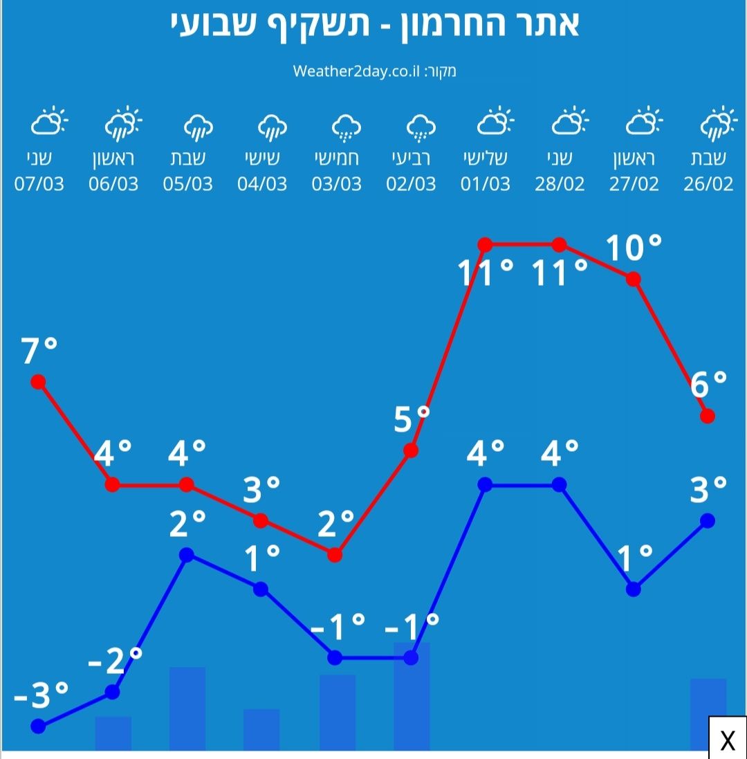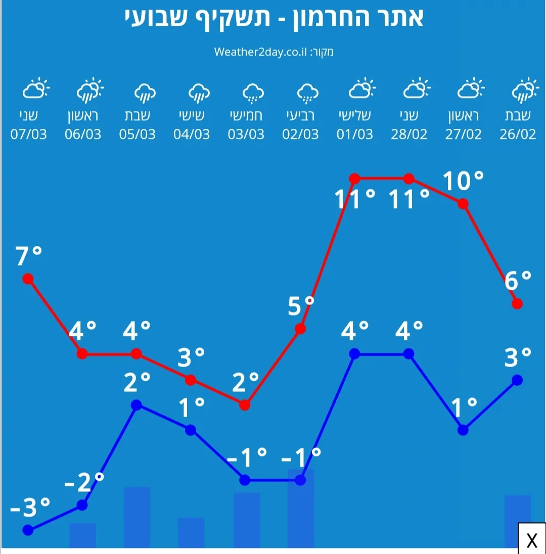 - כמה נמדד בחרמון רכבל תחתון? דוד