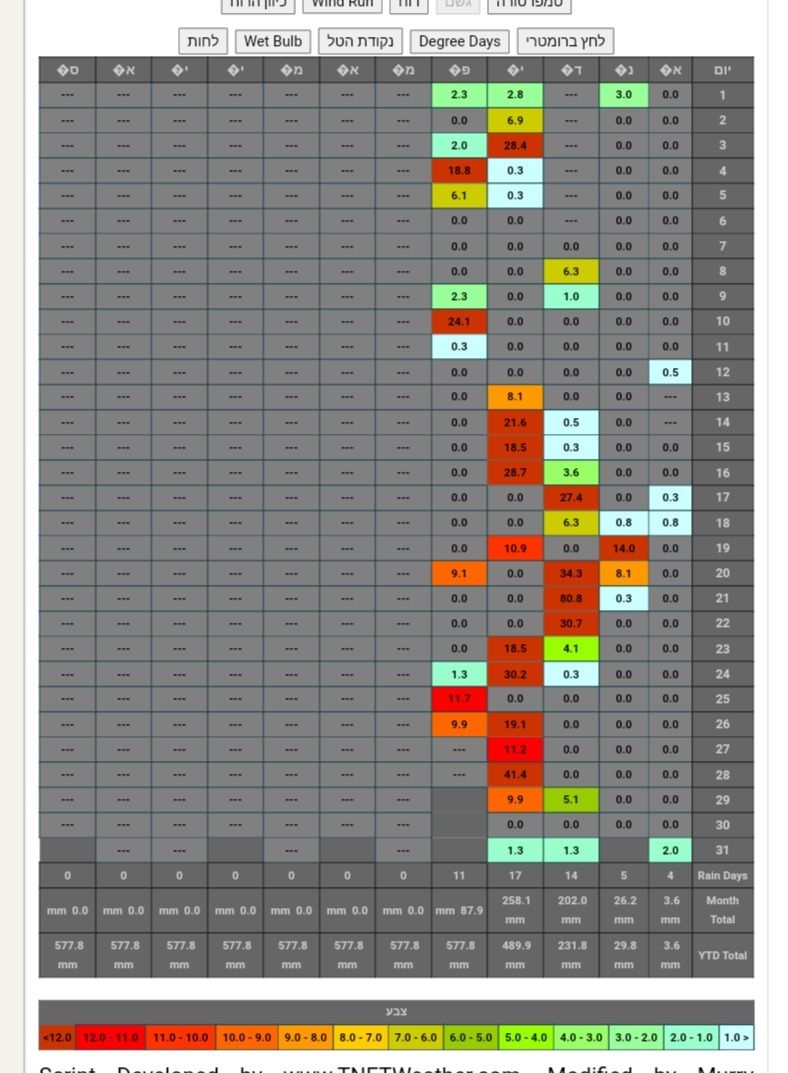 * ייתכן ונכללות כמויות מסוימות מגשמים שירדו לפני חמישי