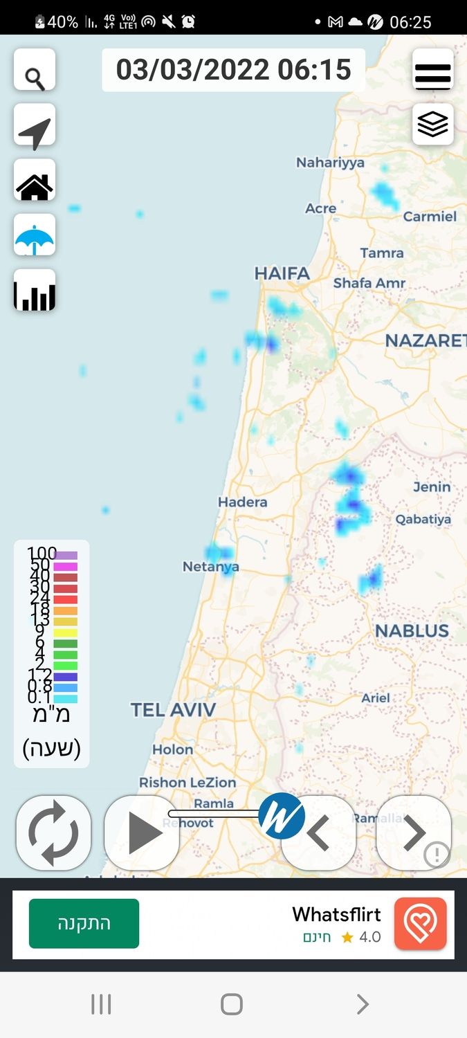בנוגע לכמויות המשקעים, חיפה העליונה (הטנכיון והאוניברסיטה) לוקחת את ההובלה כעת.