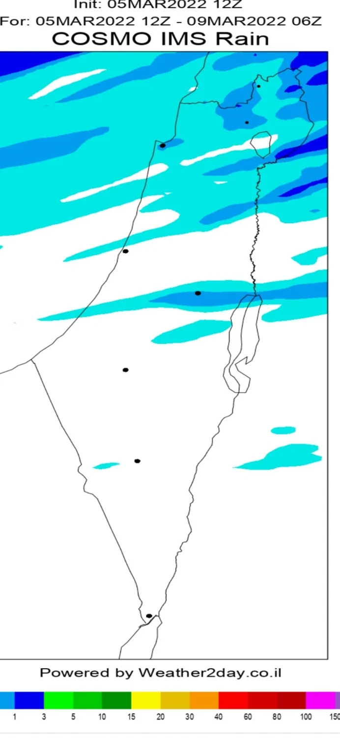 יום חמישי ( 10.03.22 ) : גשום לפרקים עם עוד ירידה בטמפ' שיהיו נמוכות מהרגיל לעונה. בחרמון צפוי שלג.