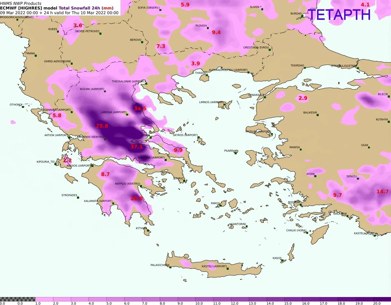 בנוסף מצורפת מפת האיזורים בהם יקבלו שלג ביוון בשעות הבאות.