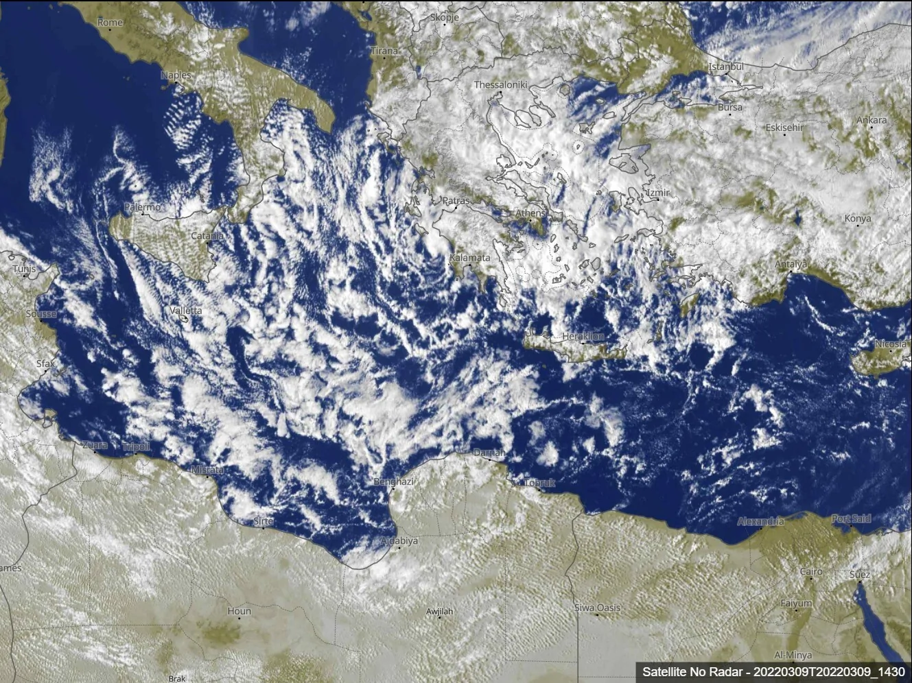 הסערה שפוקדת את יוון בדרכה גם אלינו, באנימצית הלווין אפשר לראות היטב את התקדמות ענני הסערה מזרחה.