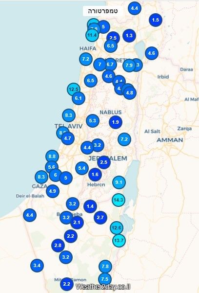 - טמפרטורות מקפיאות כעת ברחבי הארץ: Weather2day