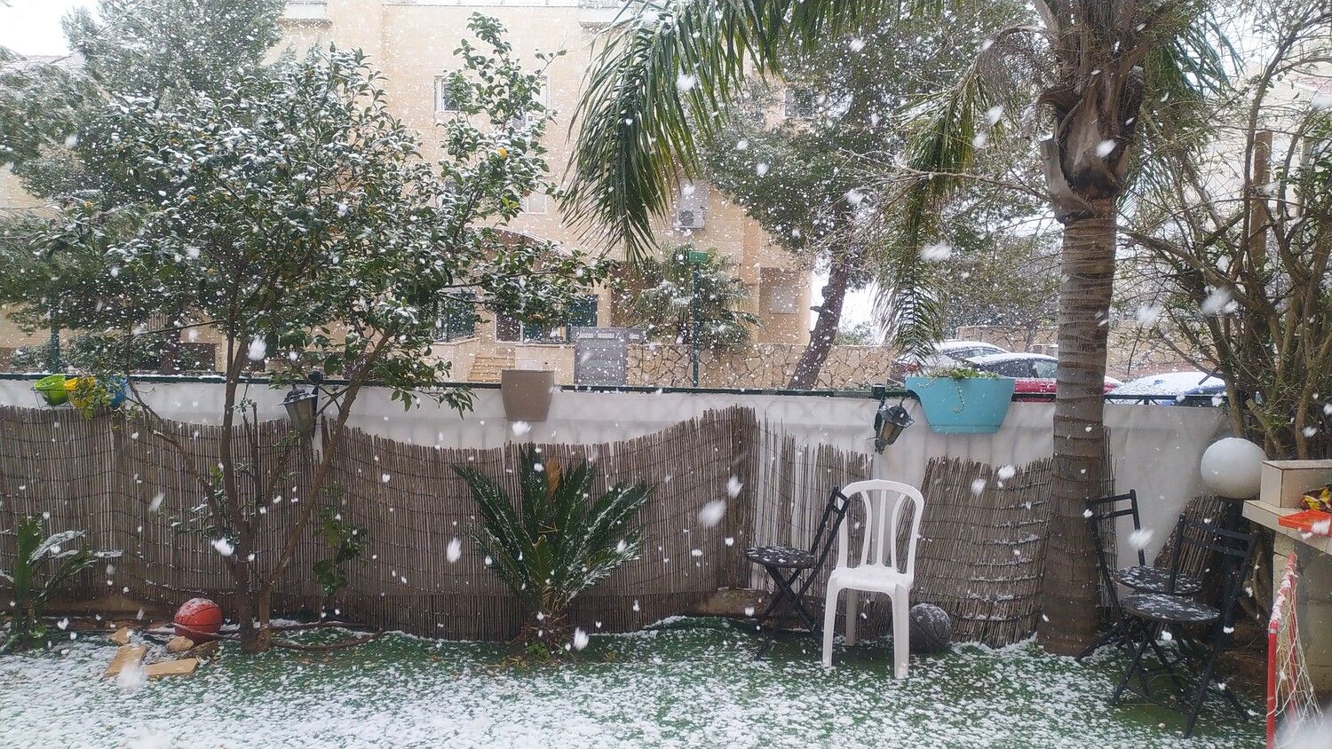 - כבר עשר דקות של שלג בינוני מתחילים לראות הערמות על מדשאות ורכבים!! יוסי