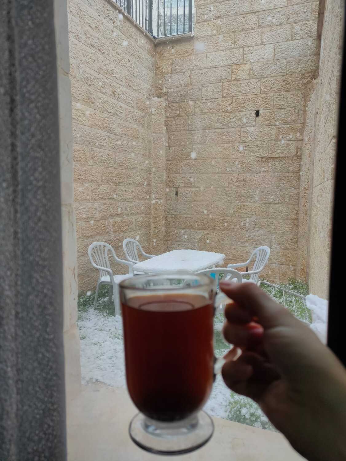 - עדיין המשקעים יורדים פה קפואים, אם כי לא שלג כרגע ירושלמי בעל כורחו