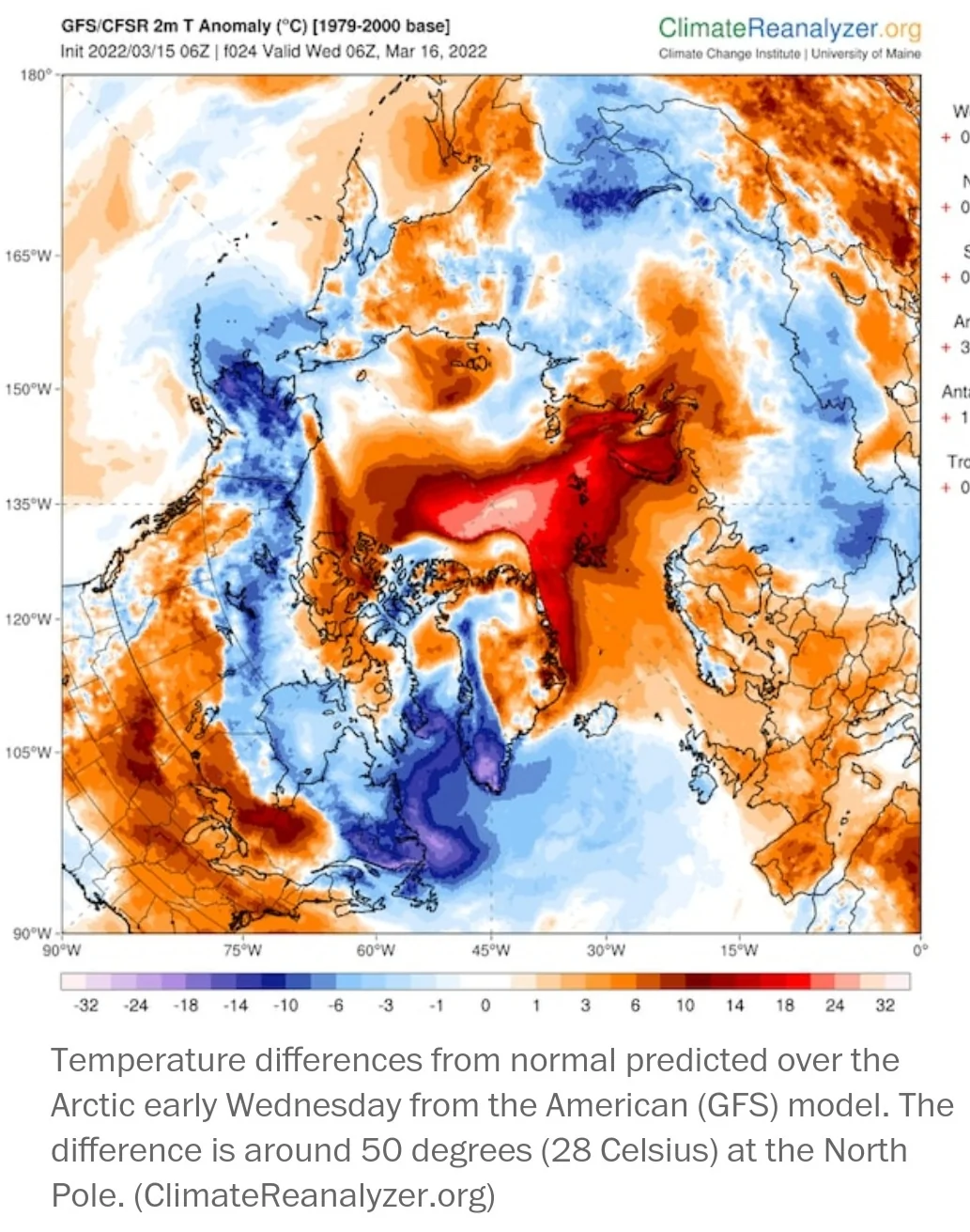 ודהירת שרידי quinlan צפונה, הקפיצה את הטמפ' בקוטב הצפוני בכ-30 מעלות מעל הנורמל