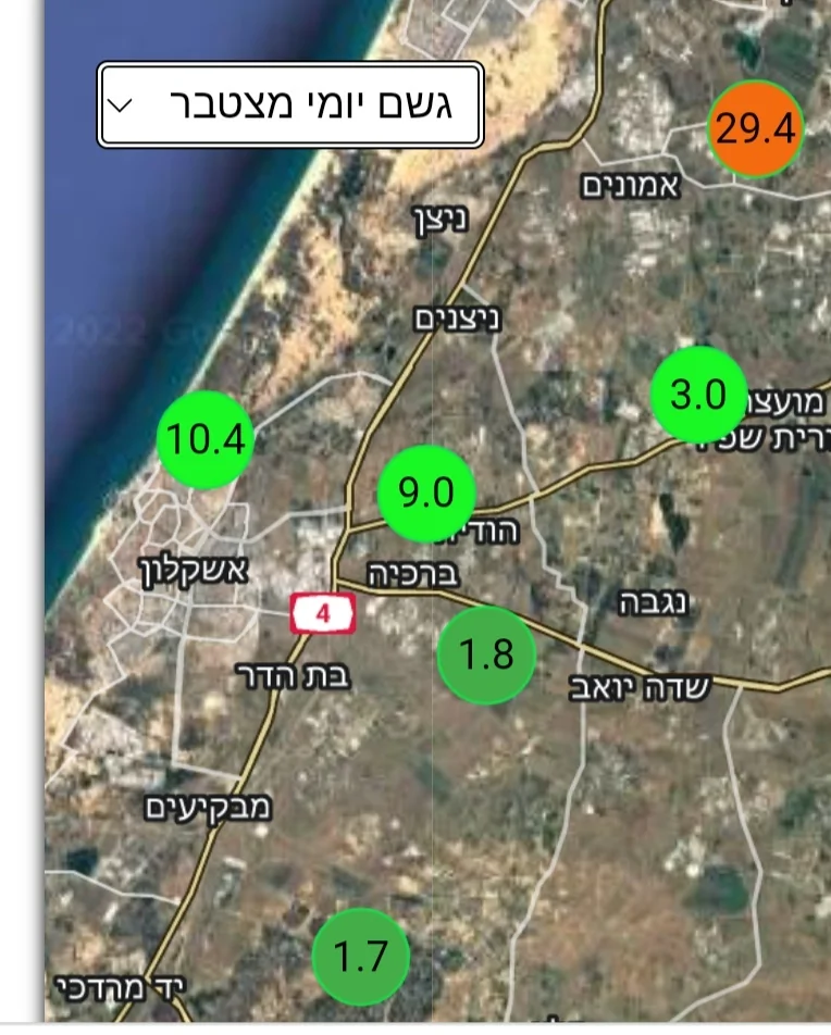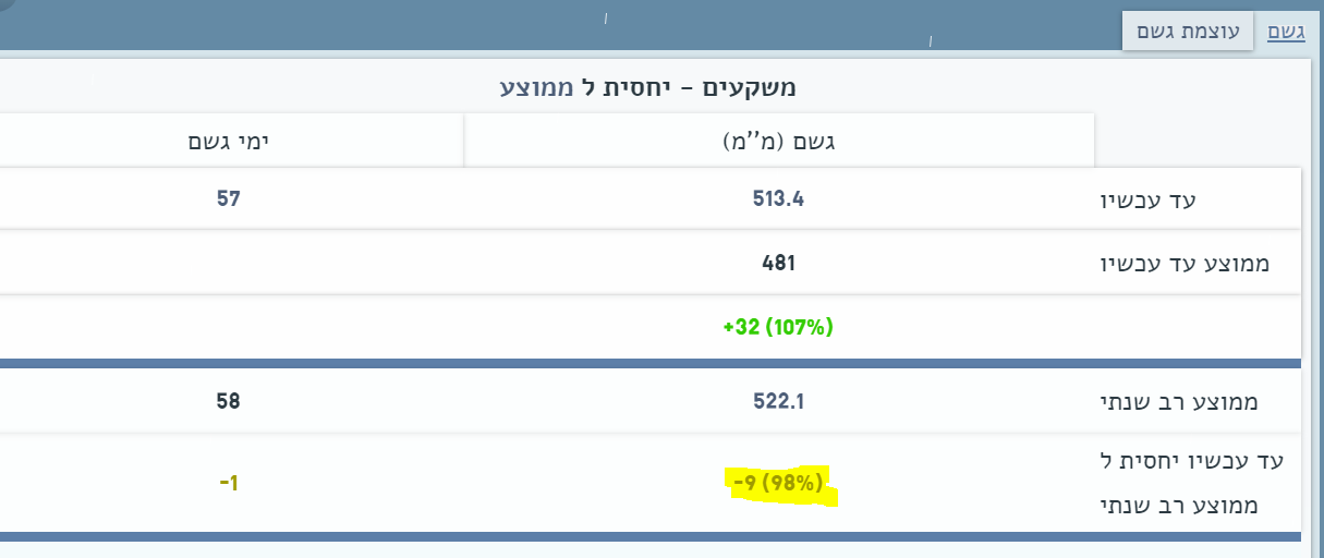 49 מ"מ למערכת עד 8 בבוקר, 89 מ"מ חודשי, 709 מ"מ עונתי