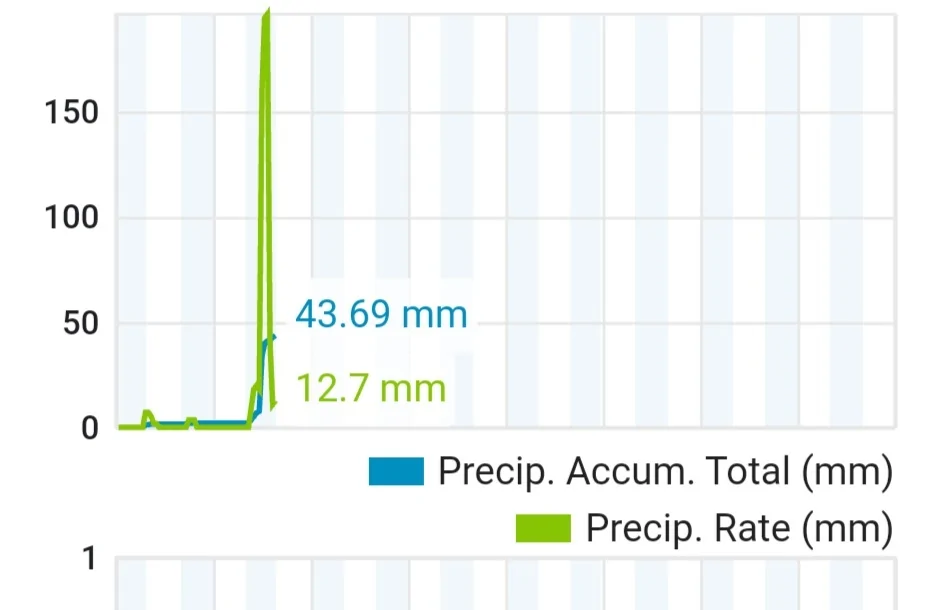 מאז המדידה היו 3 מטחי גשם וברד כבדים אך קצרים .