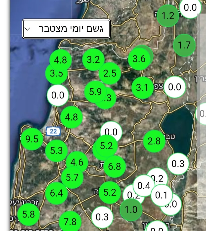 - פסוטה, עד 8:00 בבוקר נמדדו 58.6 מ"מ למערכת . ג'ירי