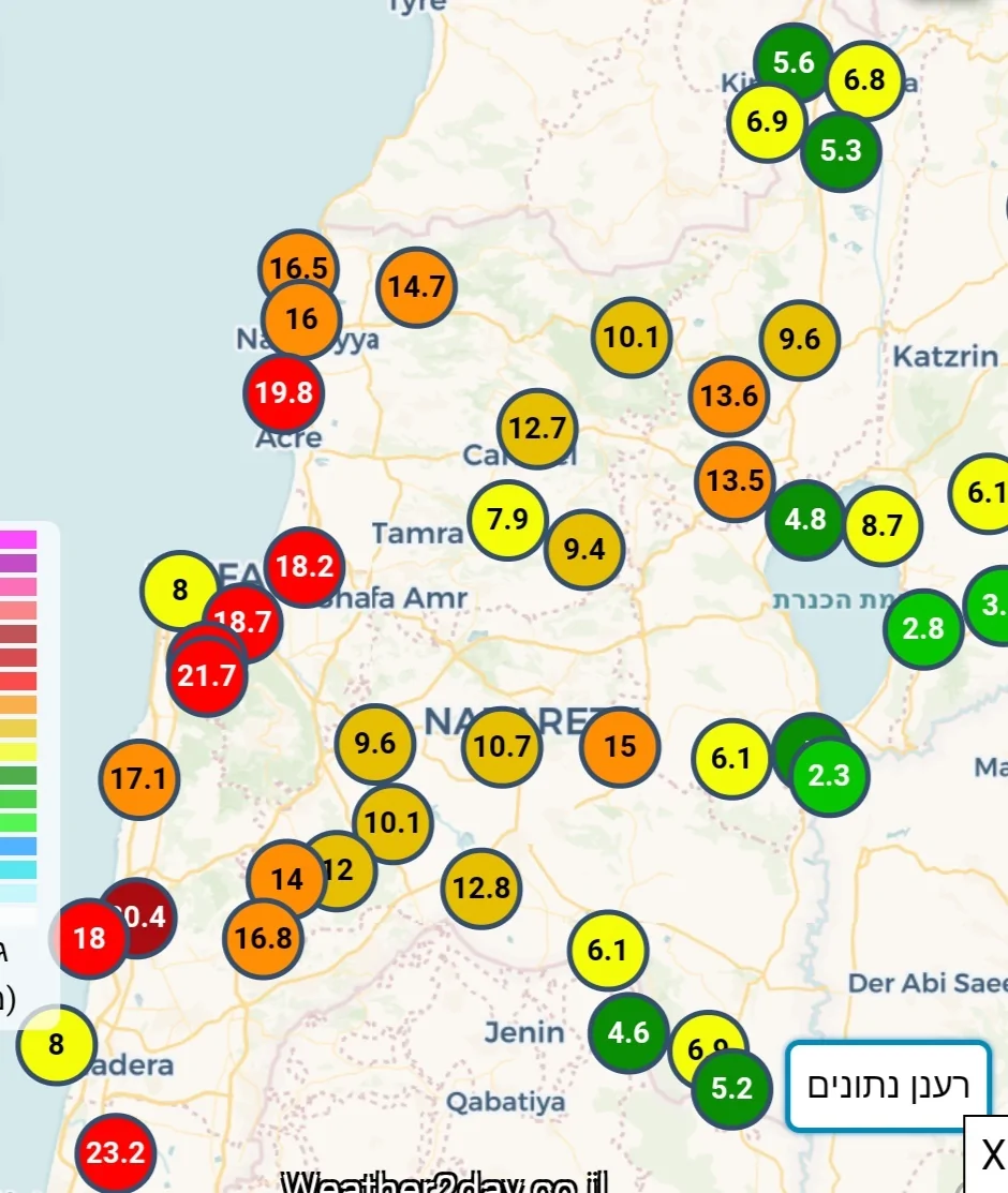 - לפי דעתי מטולה 60+ למערכת עד 8 בבוקר ירדו 55 מילימטר וירד גשם חזק כל היום איתן