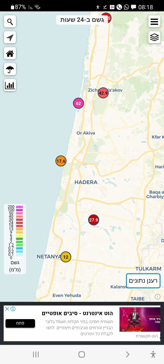 - עדכון נתניה: אחרי לילה פעיל עם הרבה מאוד גשם, רעמים ורוח. כעת ישנה רגיעה קלה והתבהרות. שי נתניה