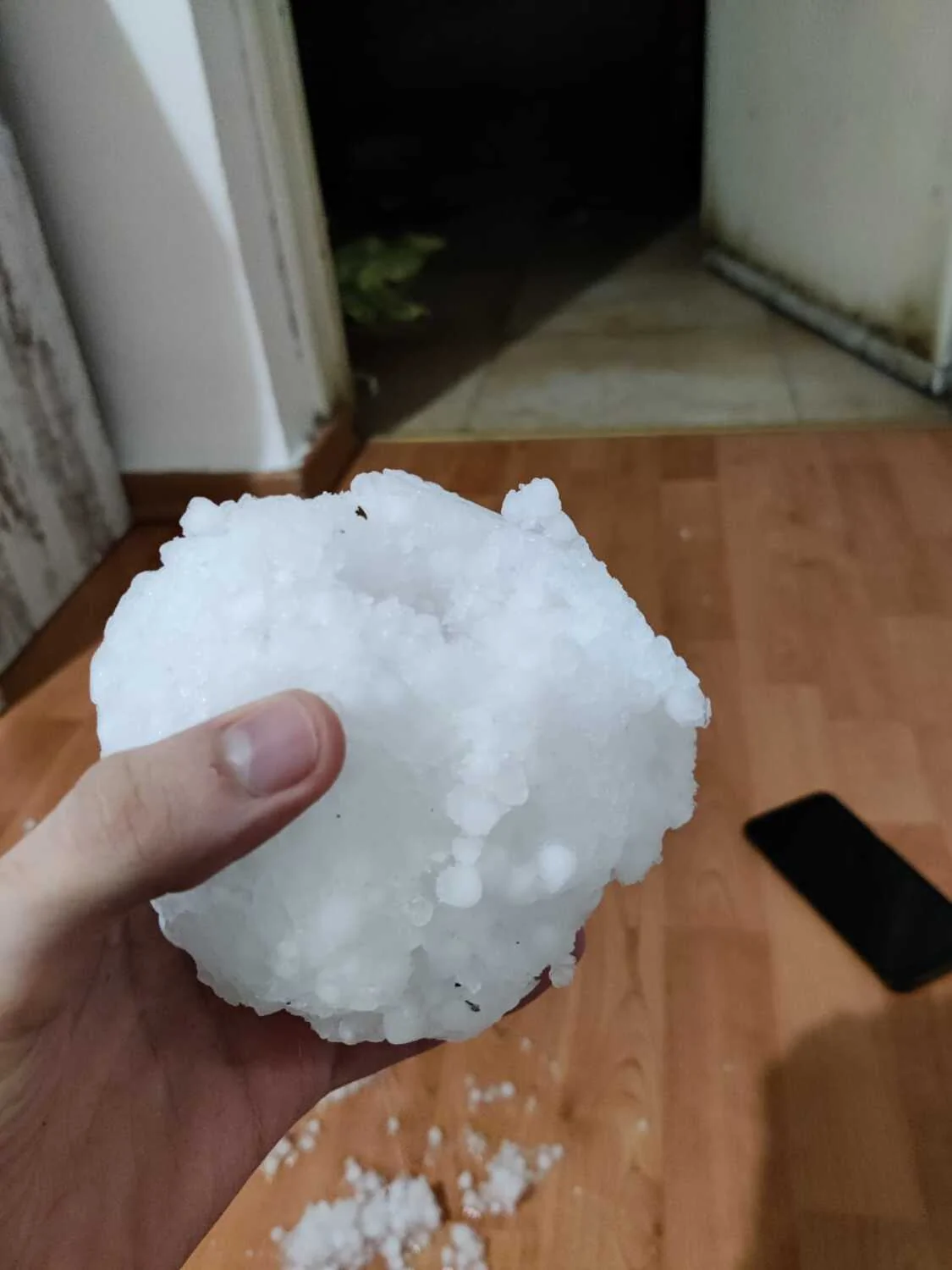 - לפני כחצי שעה, הברד הכי מטורף שירד אי פעם, בחיים לא ראיתי כזה דבר תחזיתיון