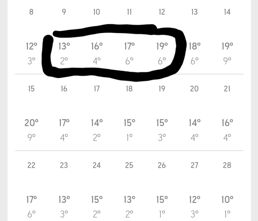 ואכן יש ימים בקיץ בשאמוני עם 15 מעלות אבל הם לא רבים, בדר"כ סביב 22-25 מעלות.
