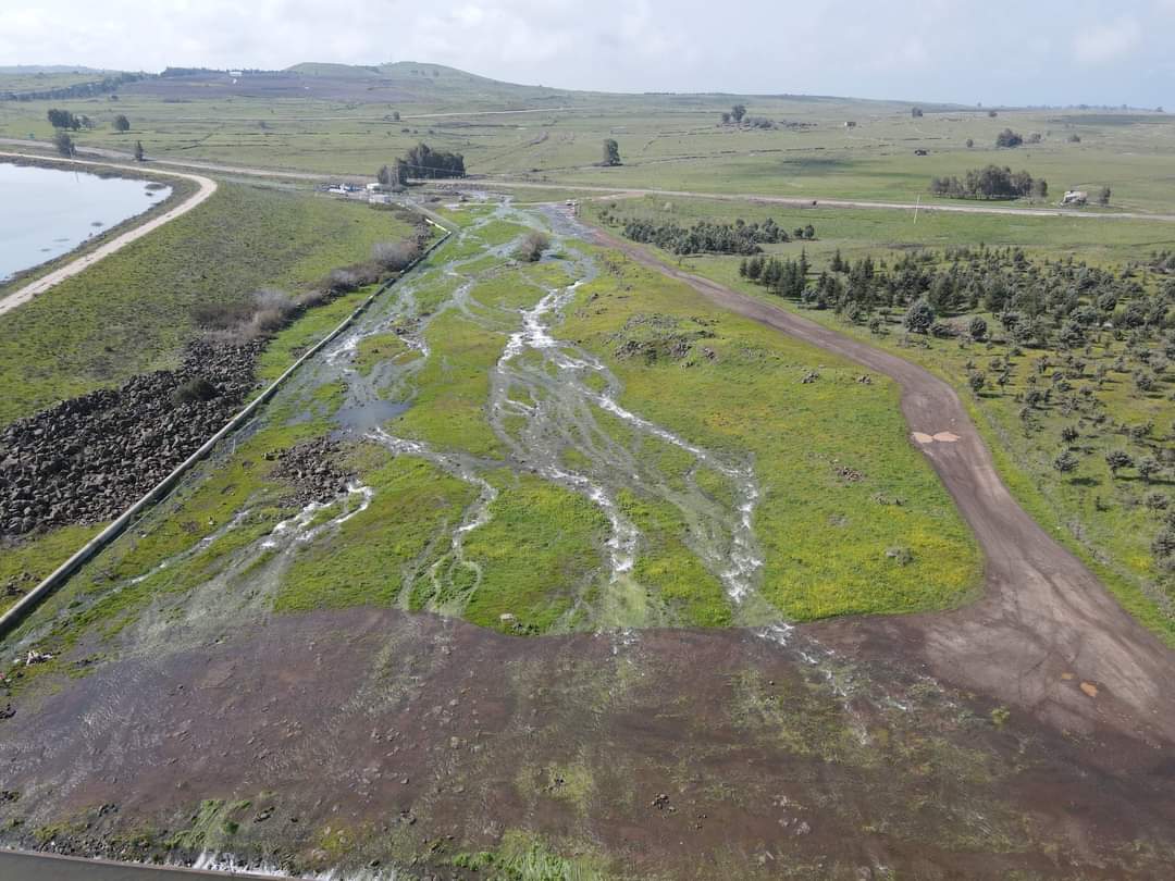 מאגר בני ישראל ממש נושק לכביש ועדיין זורמים אליו מים.