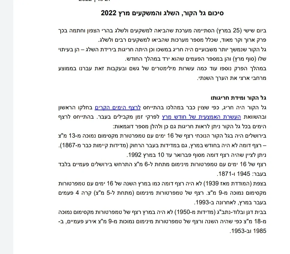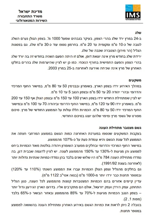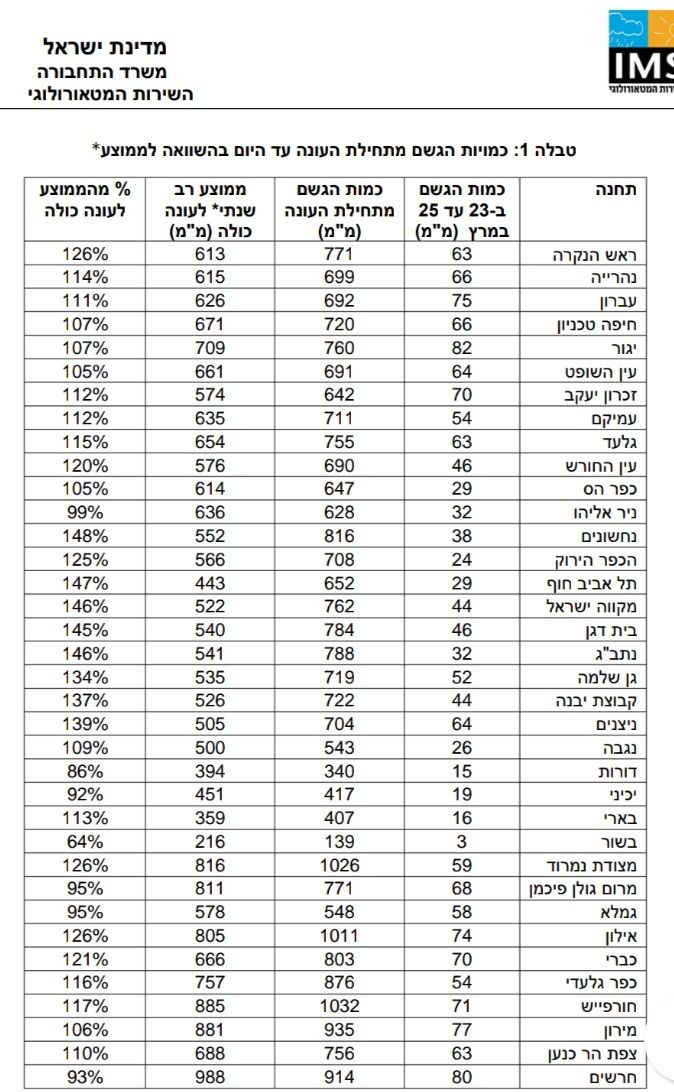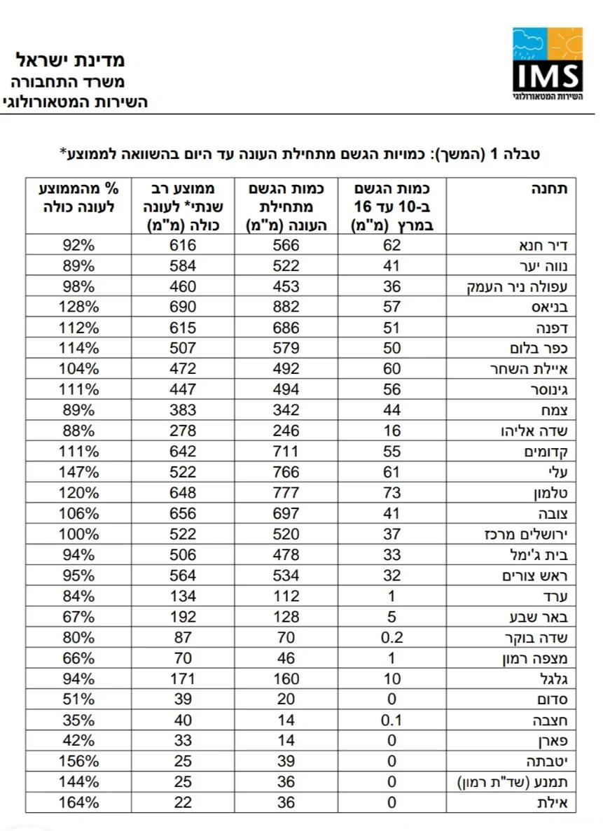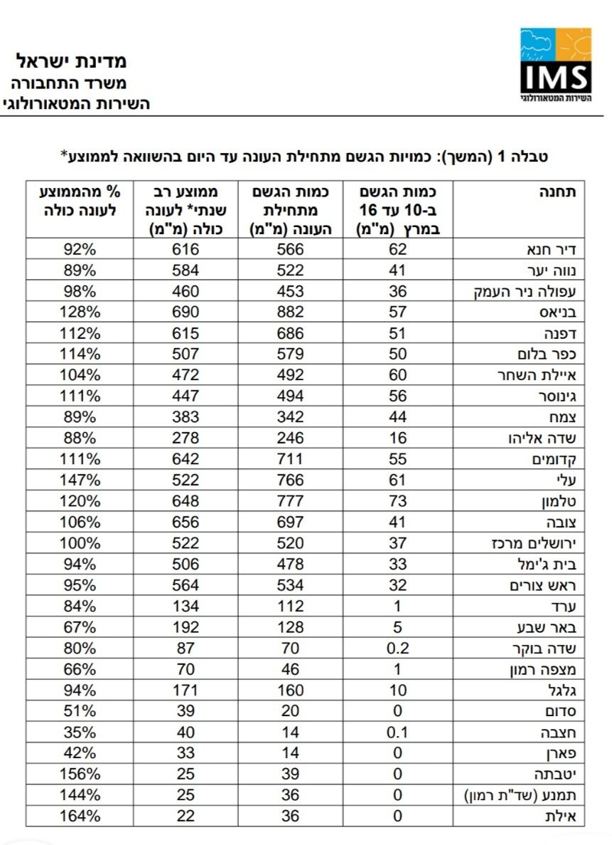 - 46.5 ממ למרץ לפני שנה ניגמר הגשם ב 26/3 עונתי 363.6 המוביל הבטוח