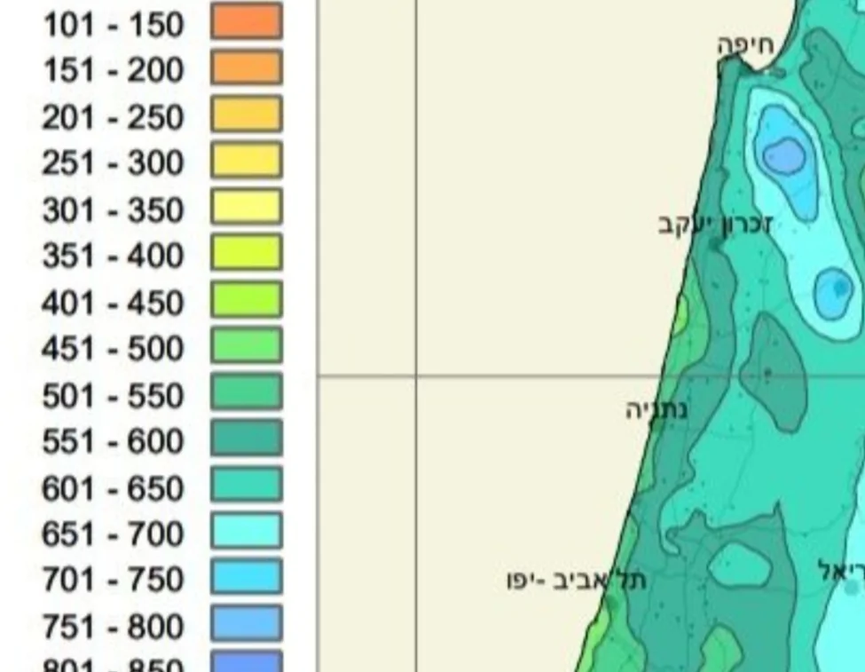 בשיא הכרמל הממוצע כ-770 מ''מ ובאזור שקמונה כ-530 ממ