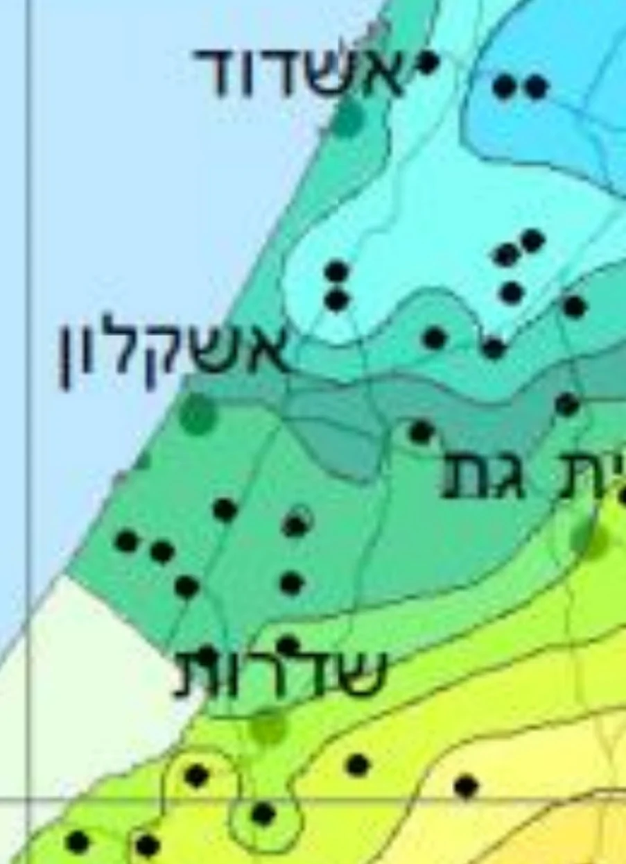 שימו לב שמצפון-מערב לירושלים (רמאללה–מרכז השומרון) ירדו העונה 800–850 מ"מ ואילו בבקעה 200 מ"מ ומטה (קווי כמויות המשקעים הצפופים ביותר נמצאים שם).
