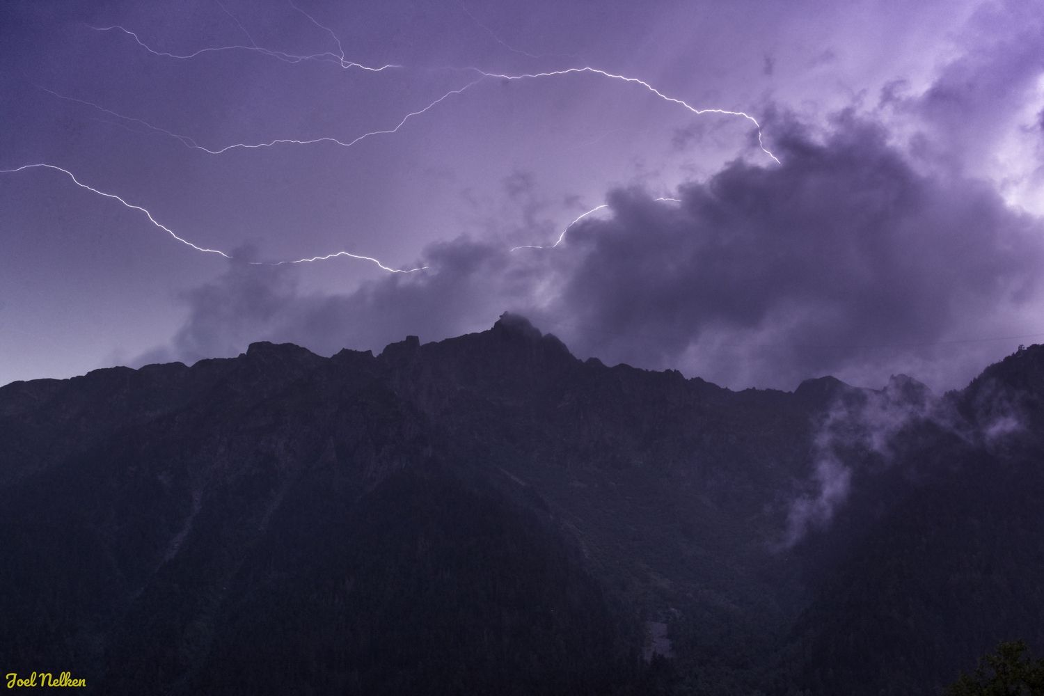 בתמונה הראשונה ניתן לראות ברקים שהופיעו מעל ההרים שנמצאים מול רכס המון-בלאן. צולם בלילה.