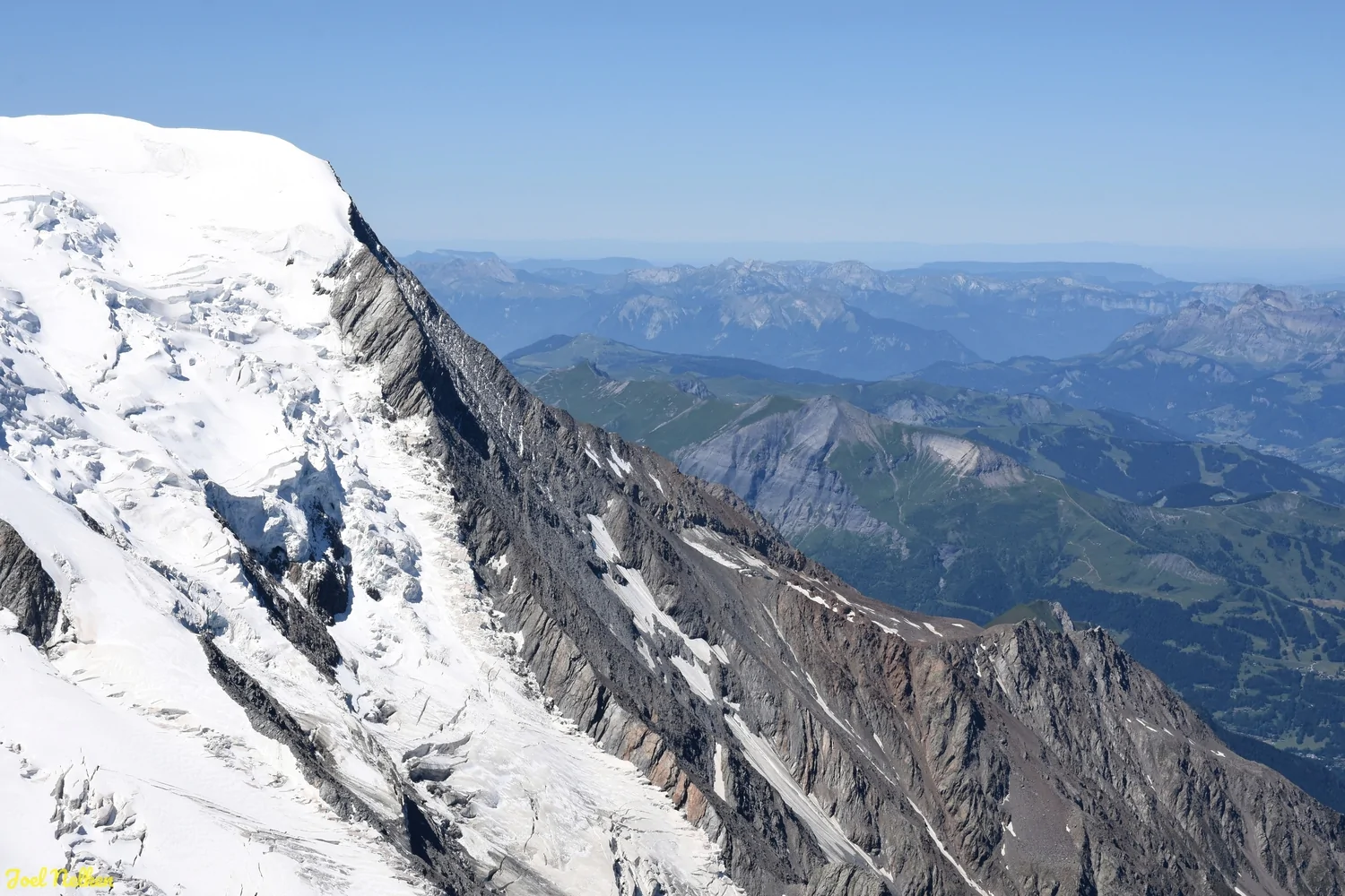 בתמונה הראשונה ניתן לראות את הפסגה של המון-בלאן (בצד ימין).