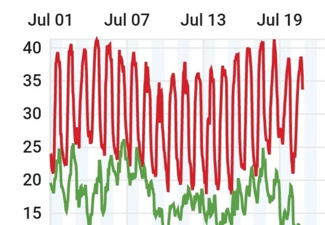לעומת 40.5° אתמול, הפרש של 17.5 מעלות.