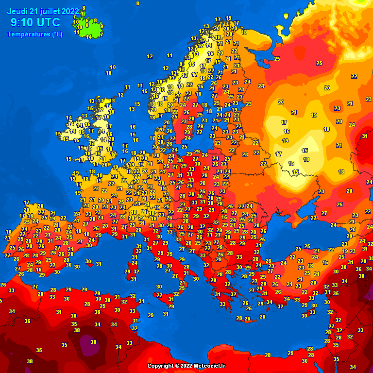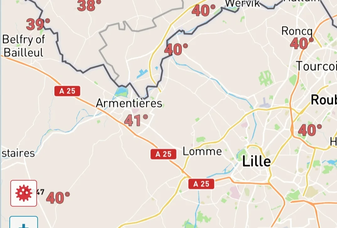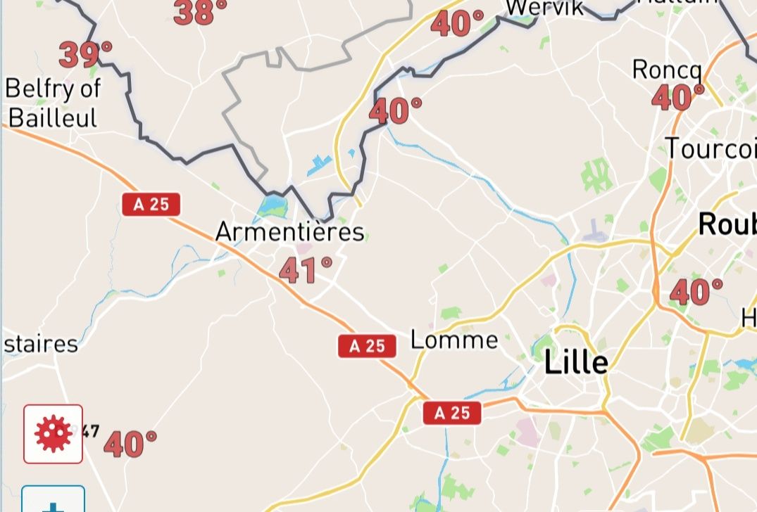 בפריז ירידה נכרת בטמפ' לעומת אתמול (שבו נמדדו 41°-40°), כעת רק 20 מעלות ומעונן, גם ירד קצת גשם.