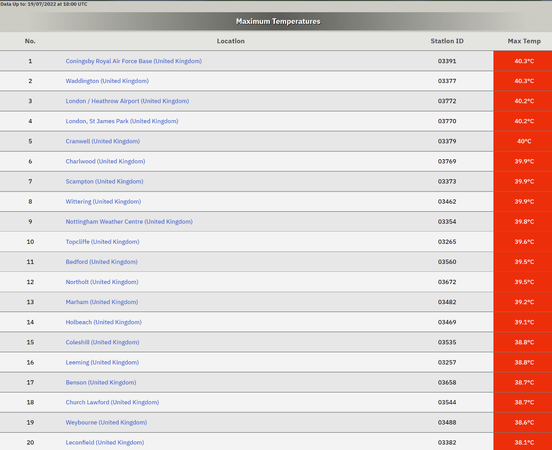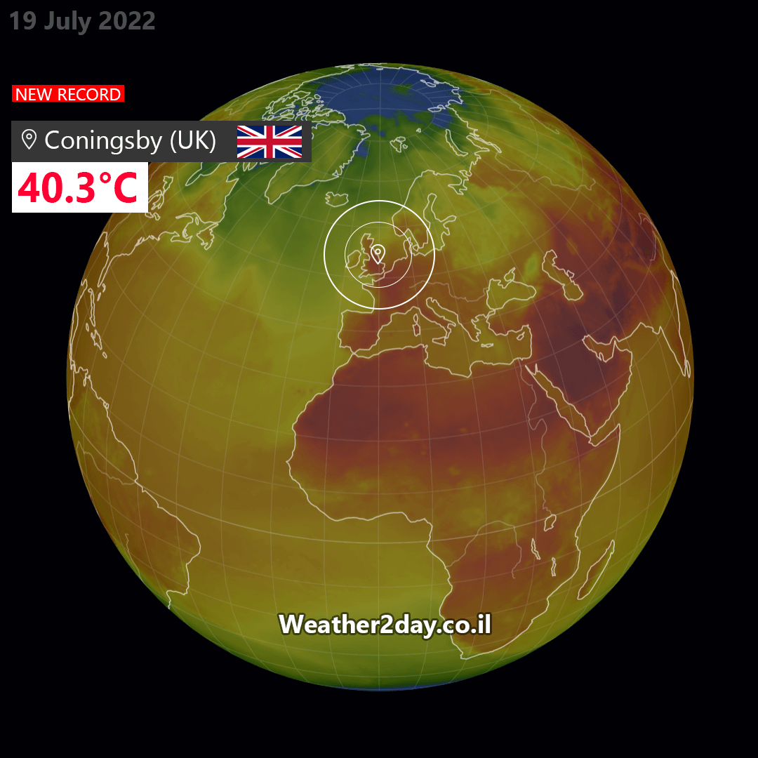 - השיא הלאומי החדש של בריטניה - כ-40.3°C בקונינגסבי (Coningsby) Weather2day
