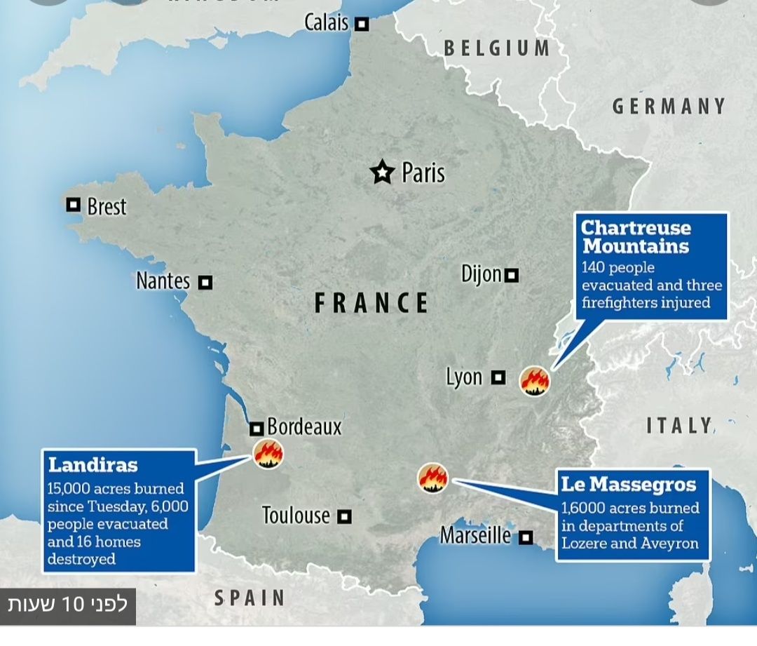 - היובש מייצר שריפות מסיביות בצרפת חנוך א