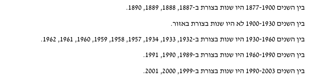 לא היתה אף שנת בצורת בודדת וגם לא צמד.