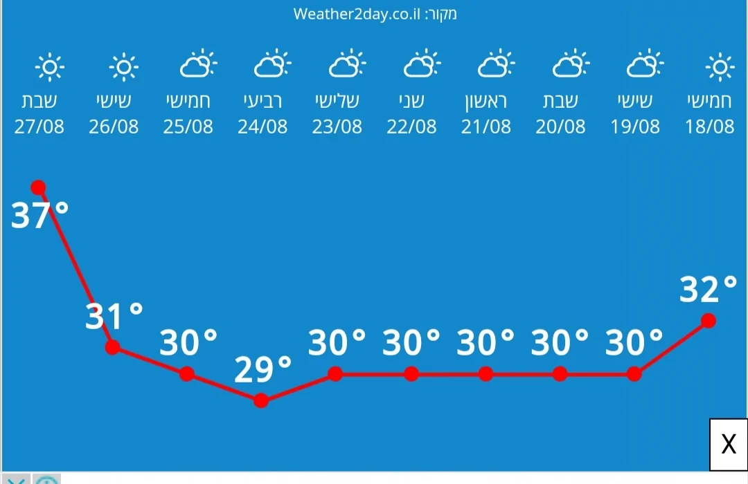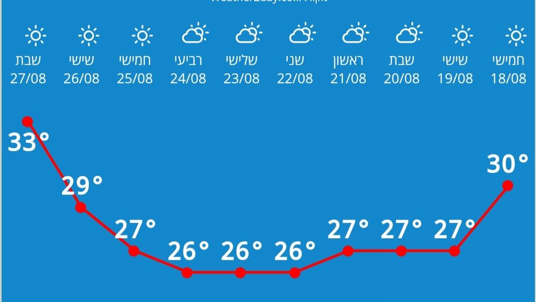 חודש אוגוסט הקר כנראה בעשרות השנים האחרונות,ללא שום יום מעל 33 מעלות (שנה רגילה לפחות 7 ימים מעל 35), הלילות נושקים ל 21 מעלות (שנים קודמות לא פחות מ 23), גם אחוזי הלחות נמוכים יחסיתוהתחושה היא שהסתיו הקדים בחודש וחצי..