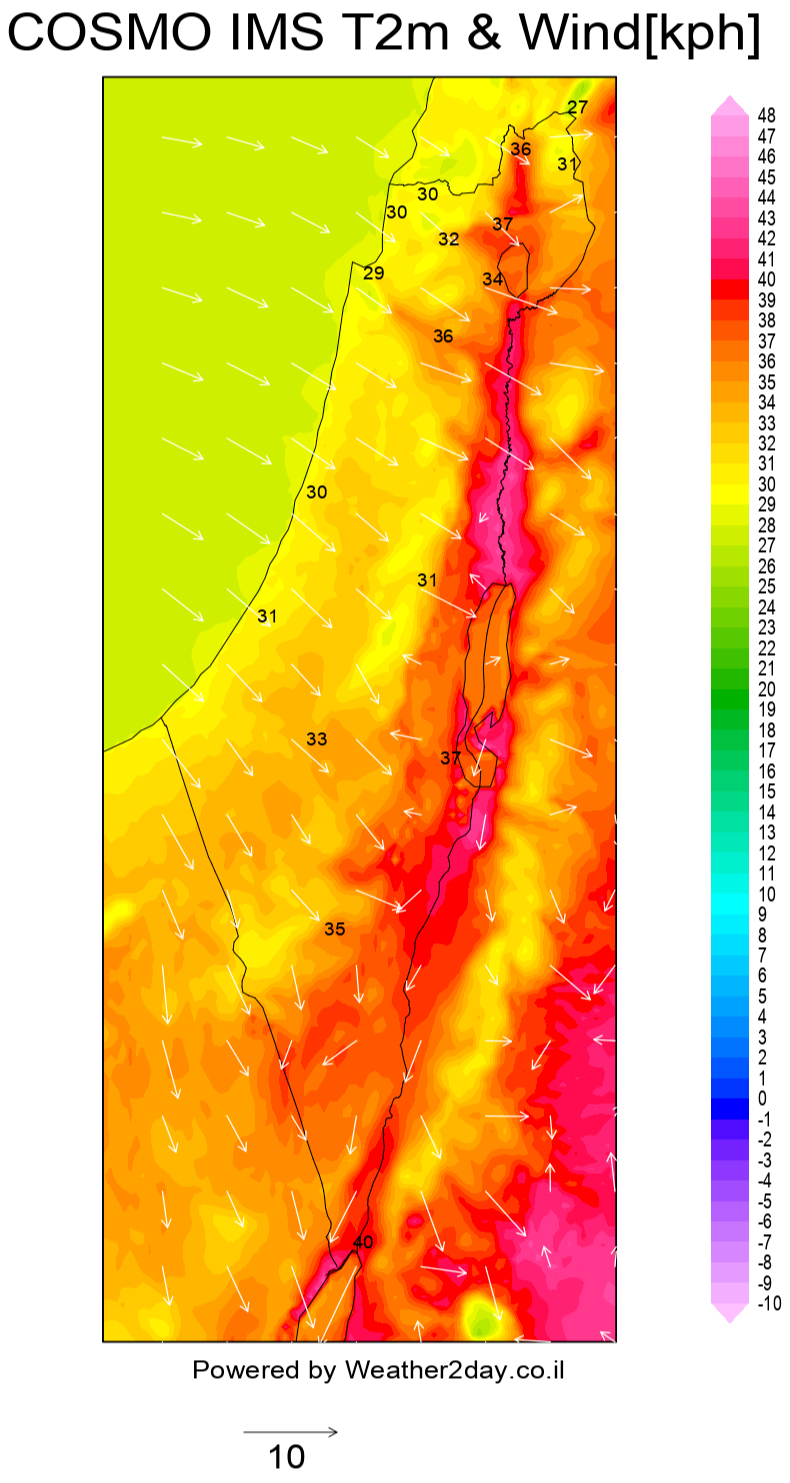 מצורפת מפת הטמפרטורות להיום בצהריים