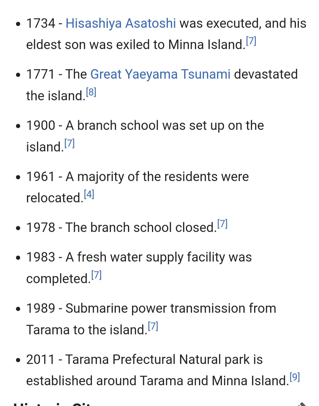 - ב-1961 בעקבות טייפונים ובצורות הועברו רוב תושבי האי למיקום אחר חנוך א
