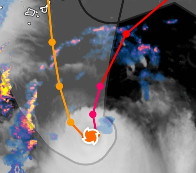 מסלולי שתי סופות טרופיות מצטלבות פעמיים תוך יומיים