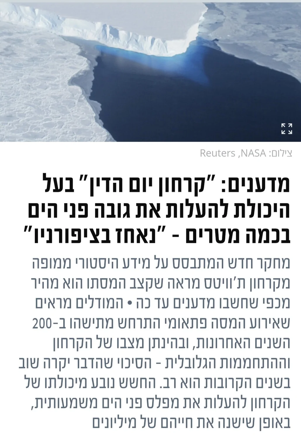 - הקרחון צריך להיות בגודל של ספרד כדי להוסיף 5 מטר לאוקיינוסים אופיר פרנקו