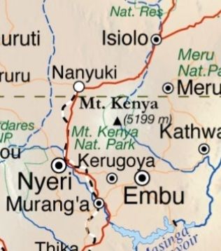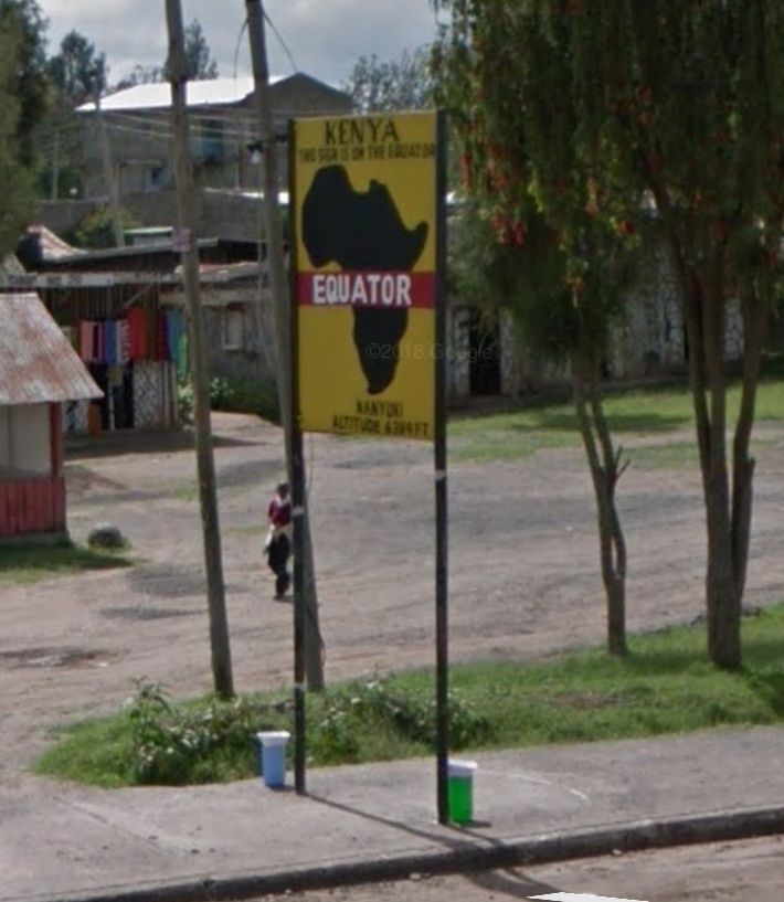ליד Nanyuki על כביש A2 ליד השלט המסמן את קו המשווה, הרי שהשמש ממש מעליו בזניט, ואין לו בכלל צל