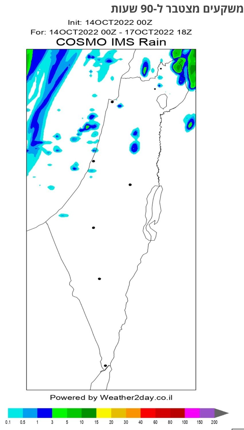 זה נתניה הייתה כבר 5 מילמטר. אבל עד כה קיבלתי רק טפטוף. וכבר כמעט כל השרון וגוש דן לחוף צפוני עד כה מילמטר ל3 רק האיזור של נתניה מרכז 7הסביבה כלום מדיד עד כה היום לראשונה היה בדרום העיר גשם נחמד שעבדתי מאמין מחר יהיה לי גם לא כל הזמן אותו מקומות זה משתנה ובגלל שהכל התמתן המודלים זה הפך ככה נקודתי מאוד