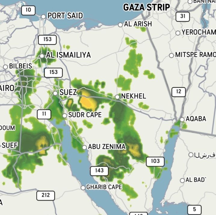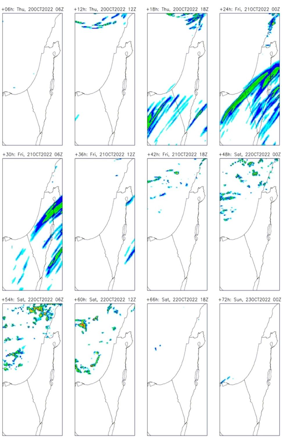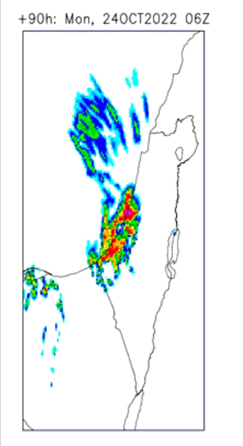 - העננים יגיעו מלב מצרים, כפי שניתן לראות באנימציה