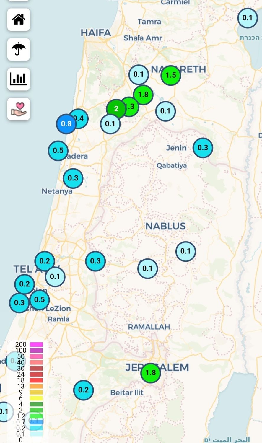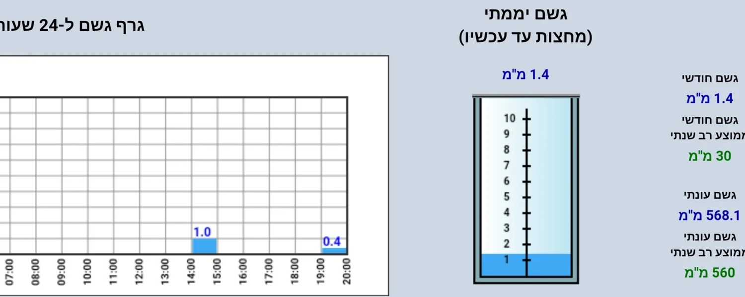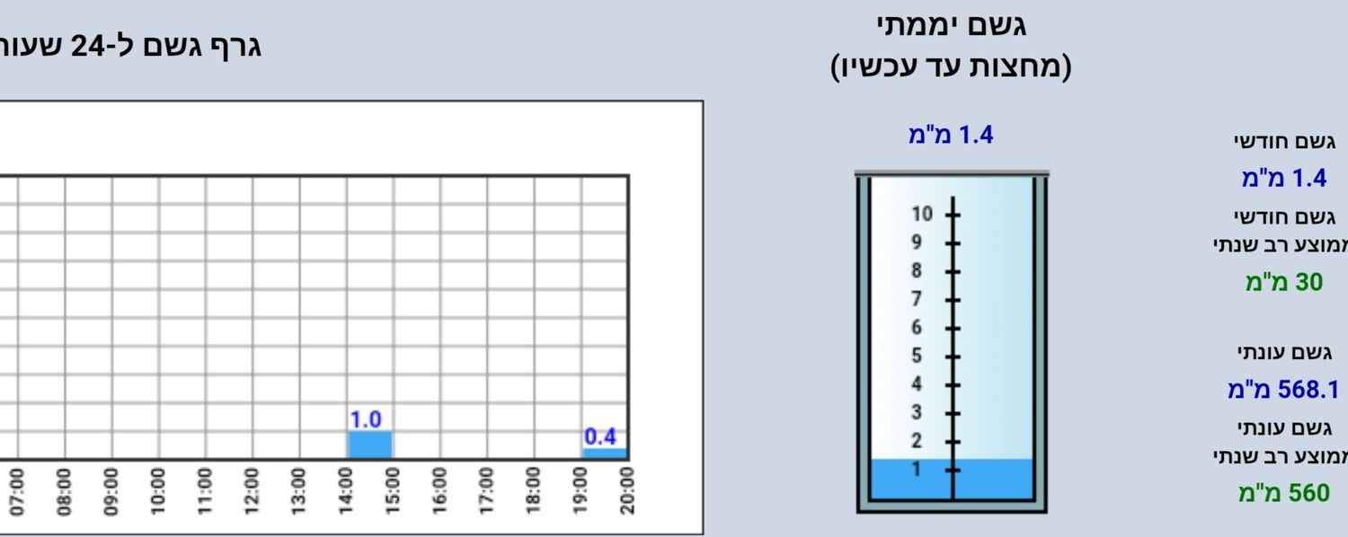תחנת מטאוטק מדדה 1.4 מ''מ גשם, כאשר מילימטר מזה ''נמדד'' בין השעה 14-15, דבר שכמובן לא היה ולא נברא.