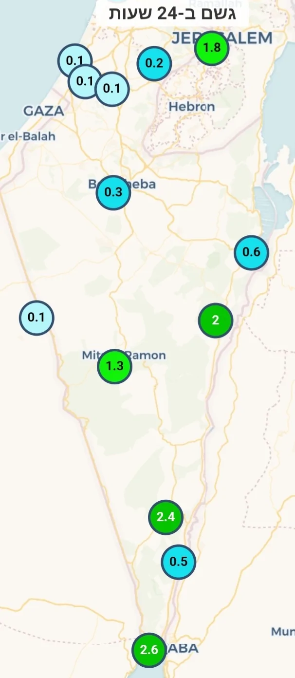 הכמויות הכי גבוהות נמדדו ברמות מנשה, עמק יזרעאל, ירושלים וכל הדרום (1–2 מ"מ)