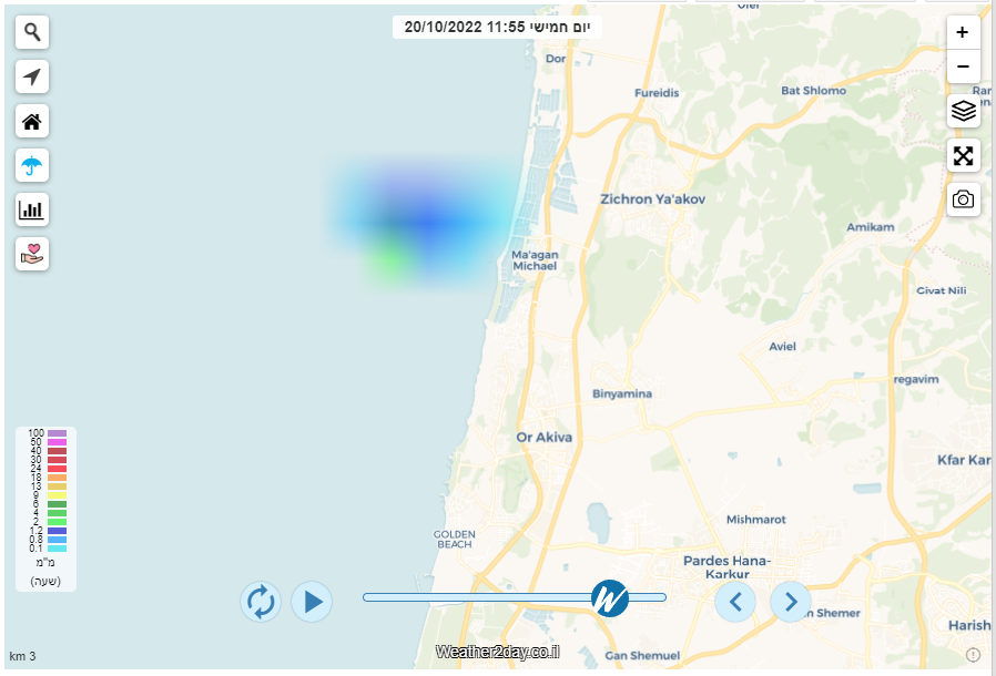 לפי העידכון הזה צפוי באזור ה 100 מ''מ במישור החוף המרכזי, אבל מן הסתם זה ישתנה...