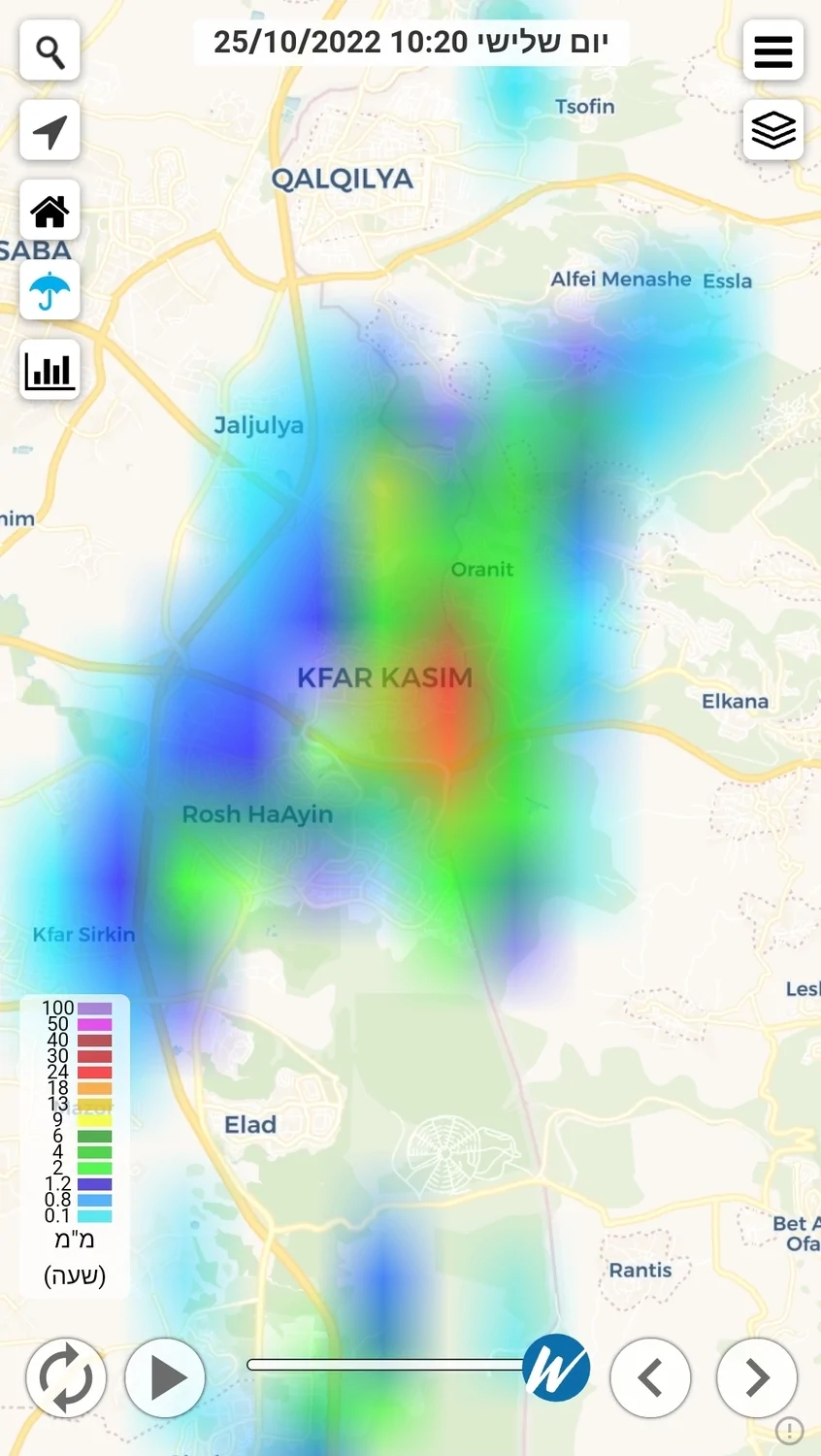 - ניתן להשתמש באופצית צילום המסך לצילום תמונה עדכנית של ענני הגשם Weather2day