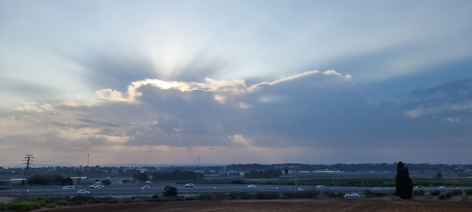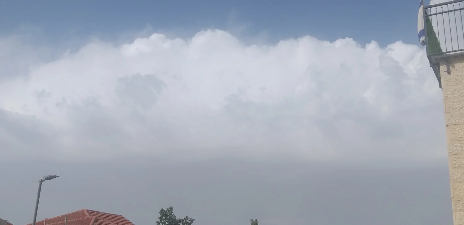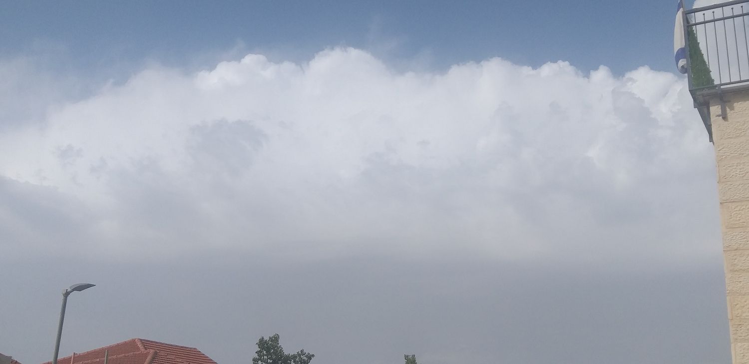 - עננות מפותחת מאוד חולפת על השפלה והרי ירושלים המערביים דובי