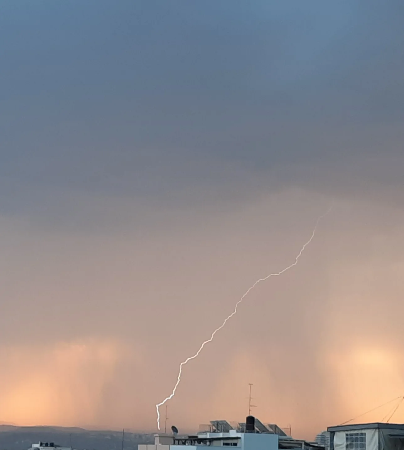 סופת רעמים וגשם חזק ולדעתי גם ברד (לא יכֹלתי להסתכל)