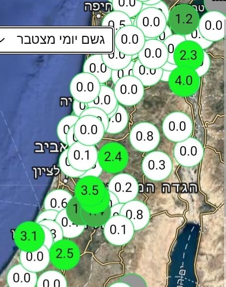 אבל רוב התחנות באזור מדווחות על כ-4 ממ, כך שסביר שבת שלמה קיבלה כ-4 ממ אבל ייתכן שיותר