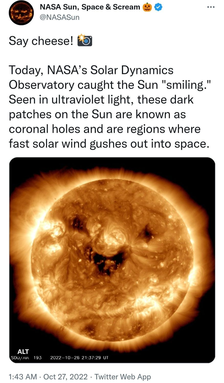 נאסא תיעדו את השמש קצת חייכנית, קצת צוחקת.