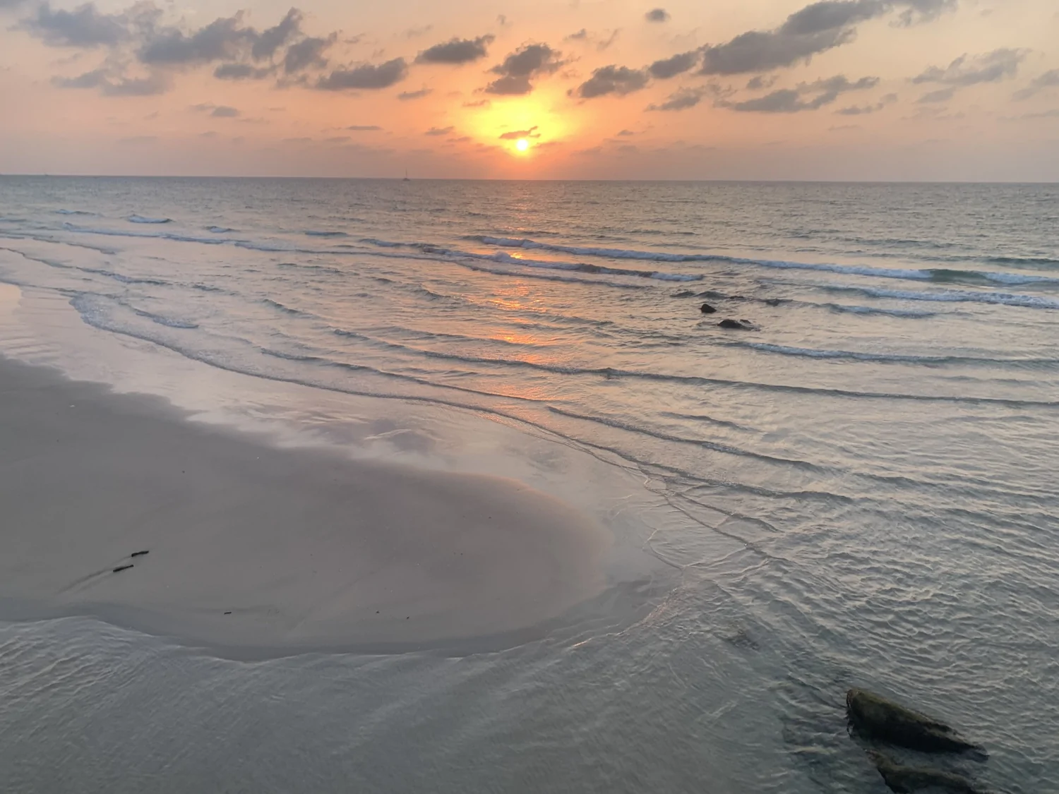 השקיעה הערב בנמל תל אביב קפה המגדלור