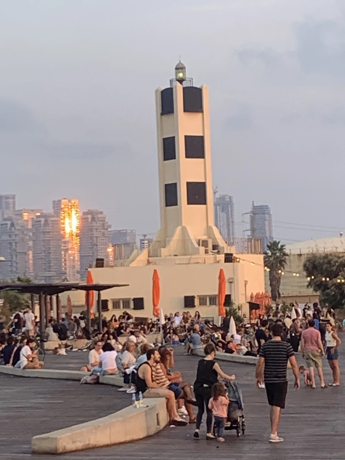 - השקיעה הערב בנמל תל אביב קפה המגדלור אהרון רוזה