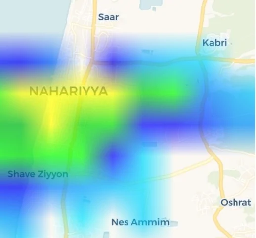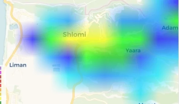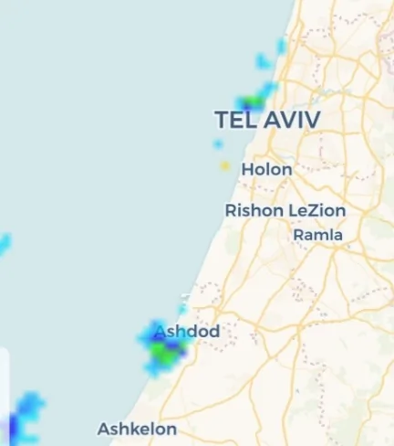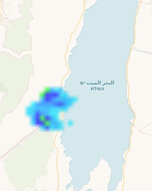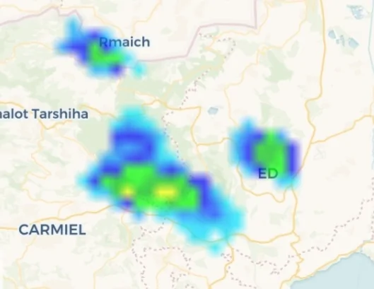 - ענן גשם במכ"ם מעל בנימינה ומעל עזה דובי