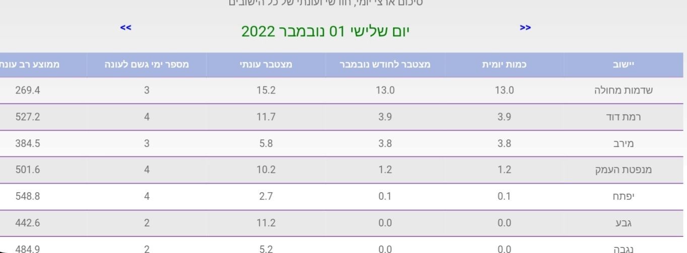 - דיווחי מזג אוויר - יום רביעי 02/11/2022 אלי
