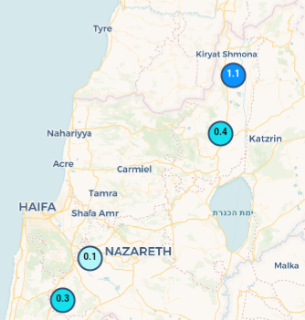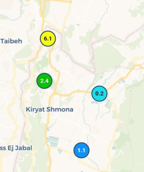 מטולה - 5.6 ממ, בוסתן הגליל - 4.3