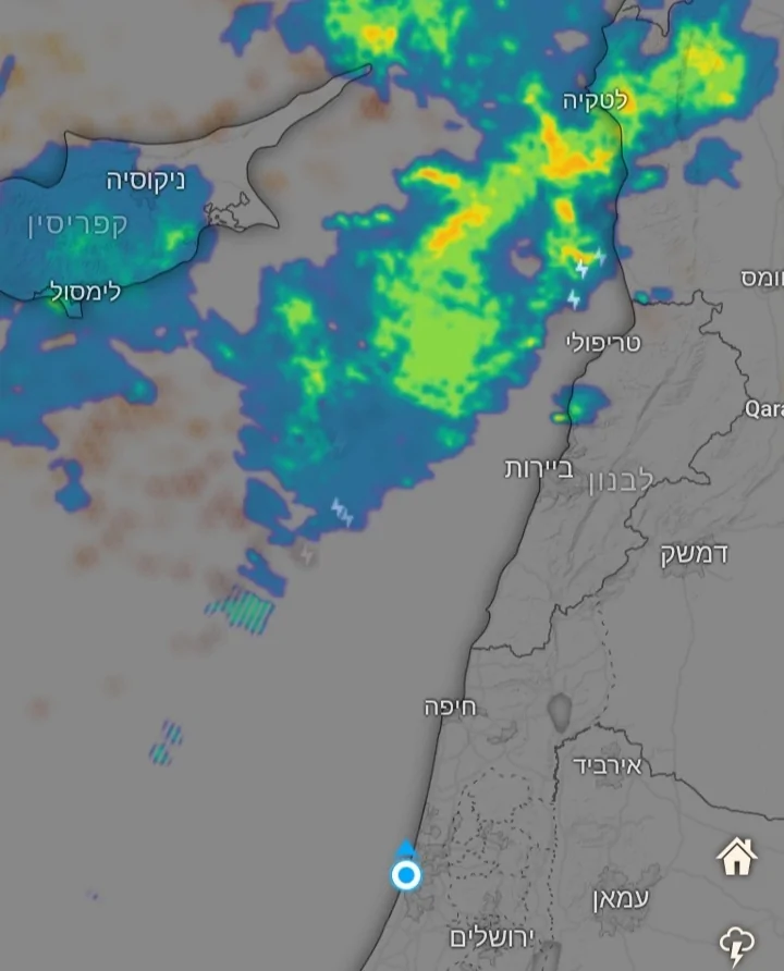 - ברקים ורעמים פה, החל הגשם בעוצמה בינונית. הדר